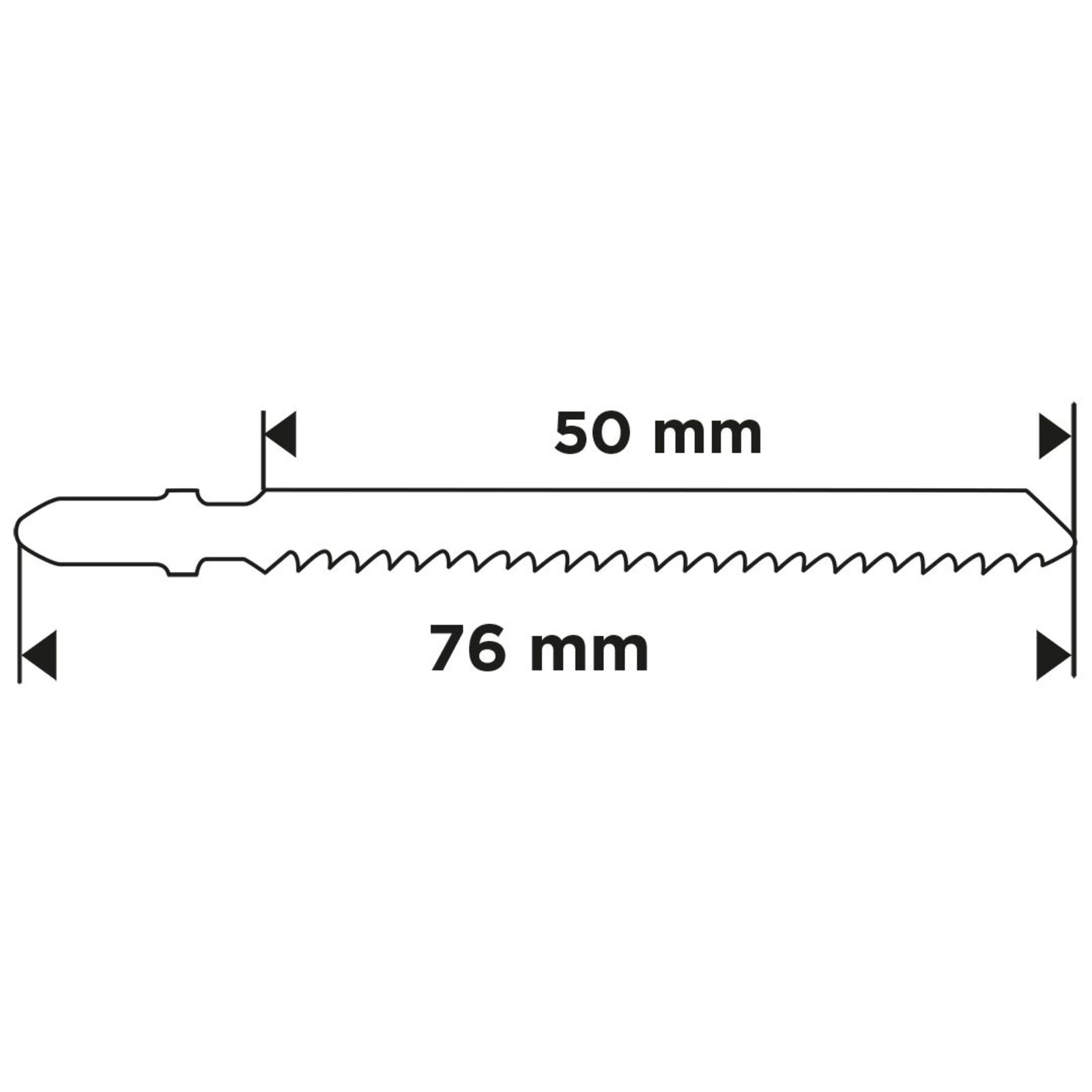 Kirakófűrészlap, 21 TPI, HCS, T-markolat, 2 db 57T546 a GRAPHITE-tól 21 TPI fogsűrűségű, HCS-ből készült, T-markolattal ellátott kirakófűrészlap. A készlet 2 darabot tartalmaz. Teljes hossza 76 mm, munkahossza 50 mm, szélessége 8 mm, vastagsága 1 mm, fogazati távolsága 1,2 mm. Alkalmas puhafa (1,5-15 mm), rétegelt lemez, forgácslap, asztalos rétegelt lemez és farostlemez vágására. A GRAPHITE márkájú penge alapvető vágást tesz lehetővé.