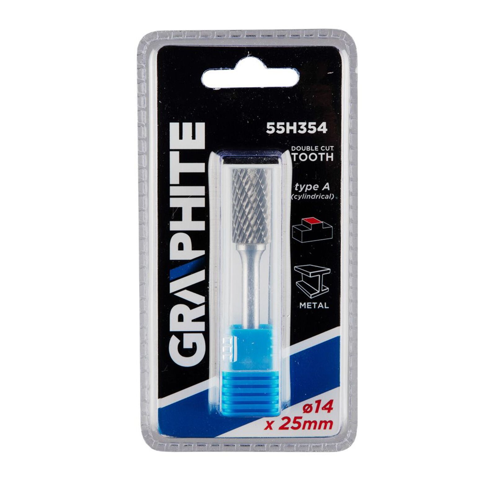 Keményfém marófej, A típusú (hengeres), 14 x 25 mm, 55H354, GRAPHITE - kiváló minőségű, a megmunkálandó felület marására vagy vágására szolgáló szerszám. Fém, alumínium és műanyag megmunkálására tervezték. Egyenes csiszolókkal használható (ne használja fúróval).