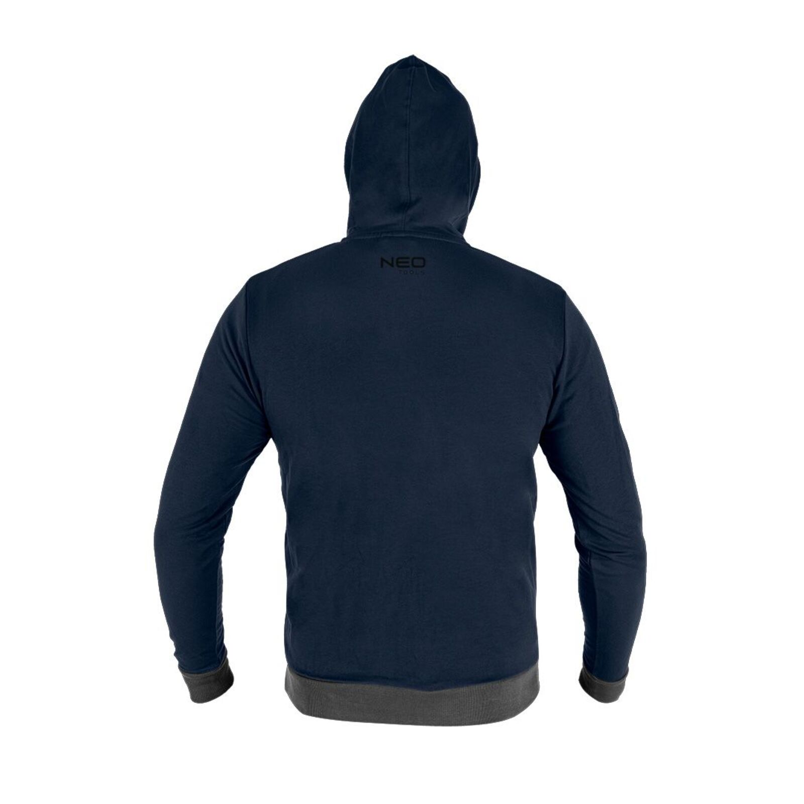 COMFORT cipzáras, kapucnival ellátott pulóver, sötétkék, M 81-513-M méretű NEO TOOLS egy olyan ruhatárelem, amely tökéletes lesz a melegebb napokra. 60% poliészterből és 40% műselyemből készült, 250g/m2 súlyú, vékony hurkos pulóver anyaga megfelelő kényelmet biztosít.