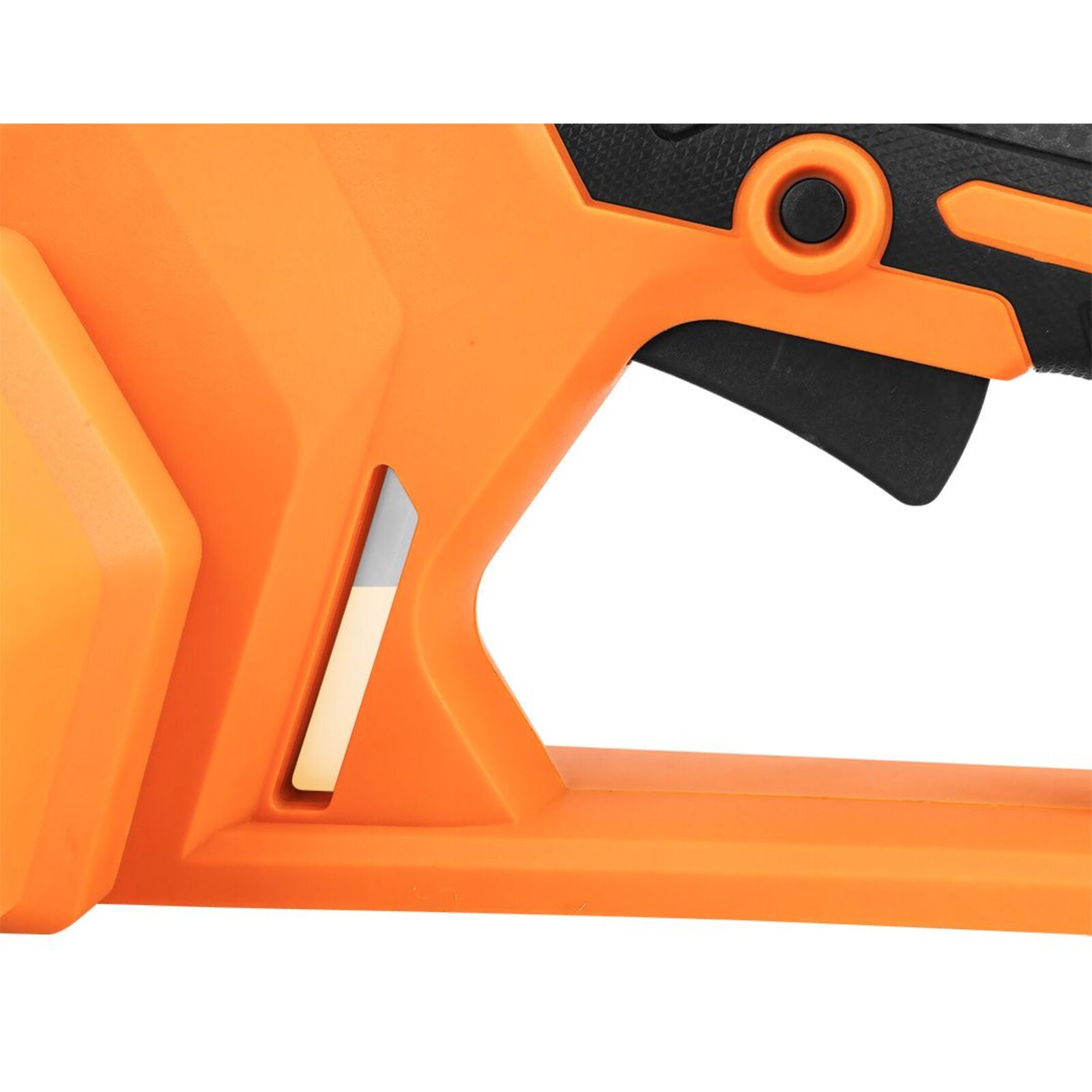 A NEO TOOLS 2200 W 457 mm-es láncfűrész 04-633 2200 wattos láncfűrész. Fakivágáshoz és -vágáshoz nélkülözhetetlen. A fűrész 457 mm-es, 18" hosszúságú vezetőrúddal van felszerelve. A lánc maximális lineáris sebessége 11,6 m/s. A készülék automatikus láncolajozó rendszerrel és szerszám nélküli feszítő rendszerrel is rendelkezik. A NEO TOOLS láncfűrész 200 ml-es olajtartállyal van felszerelve. A puha markolat kényelmet biztosít a több órás munka során. A NEO TOOLS láncfűrész professzionális és amatőr használatra egyaránt ajánlott.