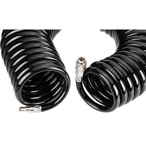A NEO TOOLS 10 x 15 mm, 15 m, PU 14-800-1 spirálnyomású tömlő 10 x 15 mm átmérőjű és 15 m hosszú tömlő. PU (poliuretán) anyagból készült, amely nagy nyomásállósággal rendelkezik - akár 16 Bar-ig. Végekkel (csatlakozókkal) kínáljuk. Működési hőmérséklettartománya -10°C és + 35°C között van. Alkalmas sűrített levegőt szállító vezetékként pl. a kompresszortól a pneumatikus szerszámokhoz (pneumatikus kulcsok, csiszológépek stb.), valamint a kompresszortól a fúvópisztolyokhoz vezető vezetékként. Lehetőség van különböző műszerek, pl. nyomásmérővel ellátott szivattyúhegy csatlakoztatására. A NEO TOOLS spirálnyomású tömlő autóipari, ipari és barkácsolási feladatokhoz ajánlott.
