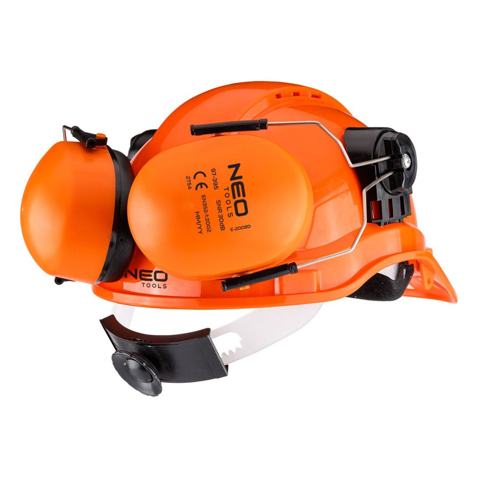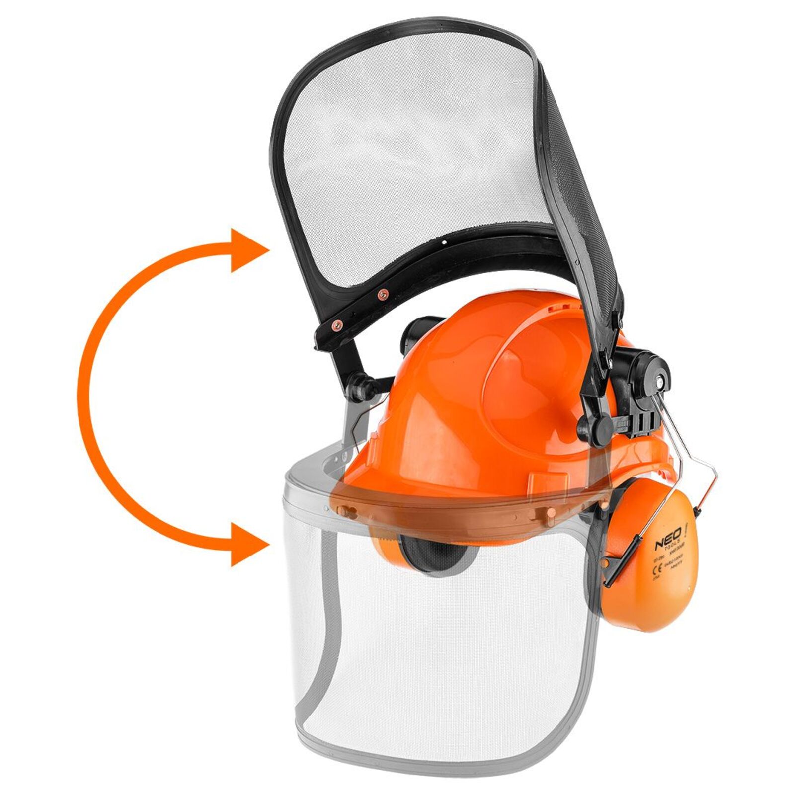 A NEO TOOLS 3 az 1-ben láncfűrészes védősisak, 97-395, egy komplett védőszett, amelyet erdészeti munkákhoz és fűnyíráshoz terveztek, fej-, hallás- és arcvédelmet biztosítva. Tartós ABS műanyagból készült, a sisak megfelelő mechanikai szilárdságot biztosít. Az 51-63 cm-es fejkerület-állító gomb pontos illeszkedést tesz lehetővé. A 6 pontos heveder, a 2 pontos állpánt és az izzadságpánt fokozza a kényelmet, stabilizálva a sisakot intenzív munka közben. A szett tartalmaz állítható fülvédőket 30 dB-es jel-zaj arányúval, valamint egy dróthálós arcvédőt, amely véd a törmelék ellen és jó láthatóságot biztosít. A teljes szett súlya 760 g, ami hosszabb, stresszmentes munkát tesz lehetővé. Ez a NEO TOOLS termék CE tanúsítvánnyal rendelkezik, és láncfűrész-, fűnyíró- és bozótvágó-kezelők számára készült.